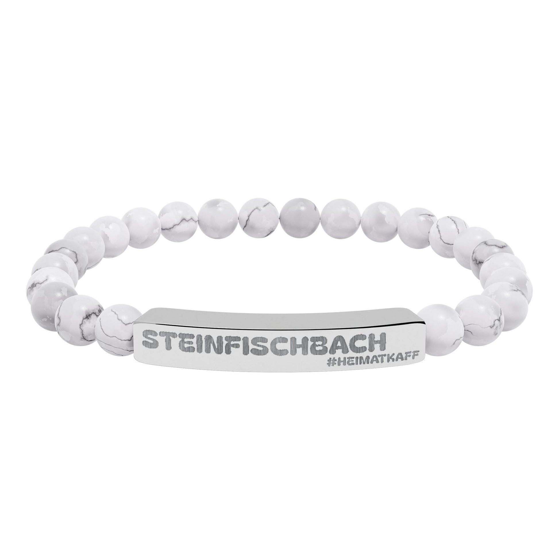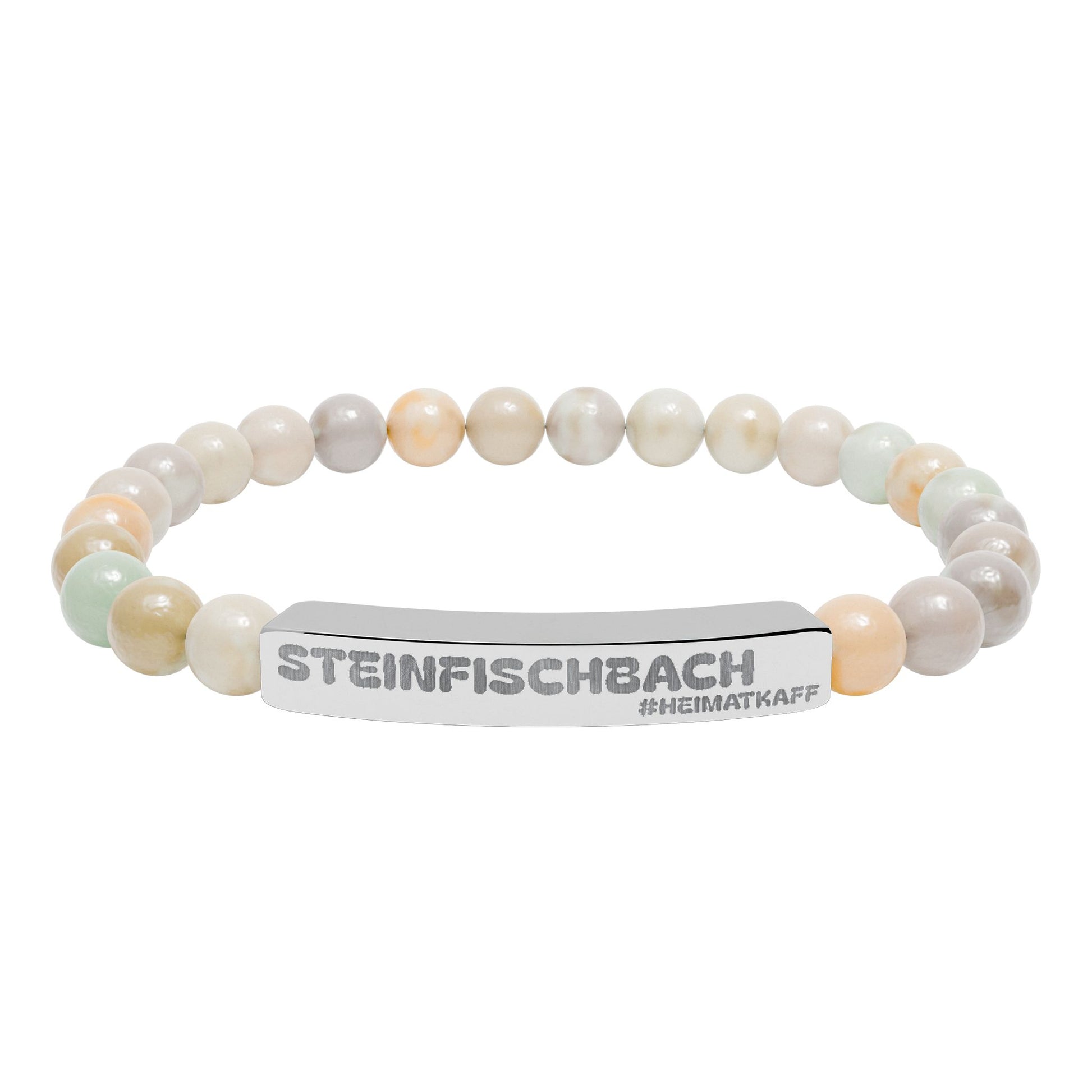 Engraved Natural Stone Bead Bracelet — Stretch Bar Bracelet (Custom Text)